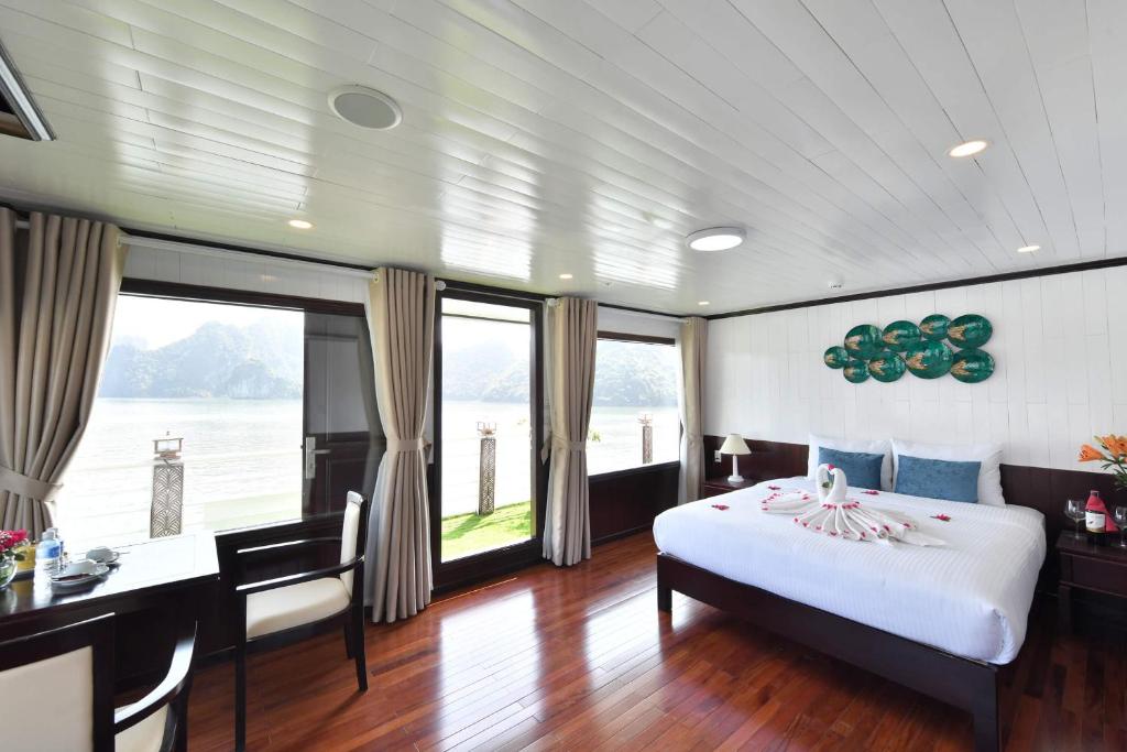 15:00 When lunch is about to finish, it is just nice that the Cruise completes its entry through Cua Van area to Lan Ha Bay (as part of Halong Bay). The area is surrounded by a lot of extraordinary limestone karst landscapes. Guests can start their journey to explore Lan Ha Bay by Kayaking and swimming in the crystal clear waters of the bay.